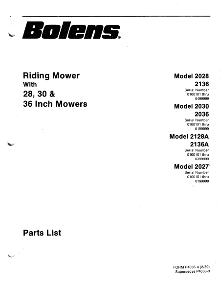Baixar BOLENS 2128A Lista de peças Inglês (15 Pages) 15.90 EUR