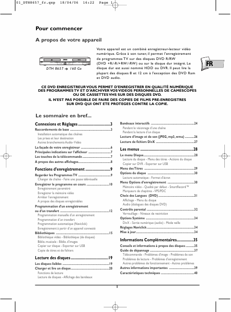 Telecharger THOMSON DTH8657 Mode emploi Français (40 Pages) 15.90 EUR