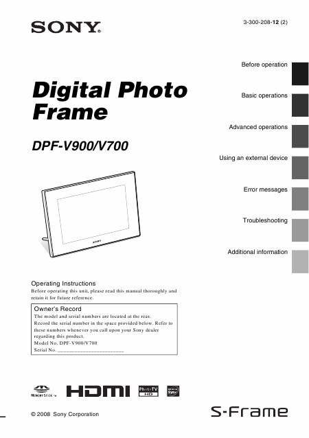 SONY DPF-V900 Users Guide English