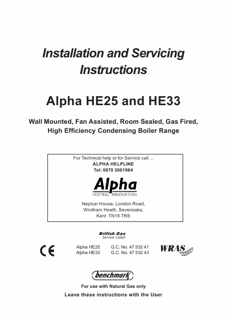 ALPHA HE25 Manuale di installazione Inglese