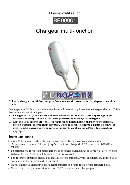 SIB DOMOTIX BE00001 Anleitung Französisch