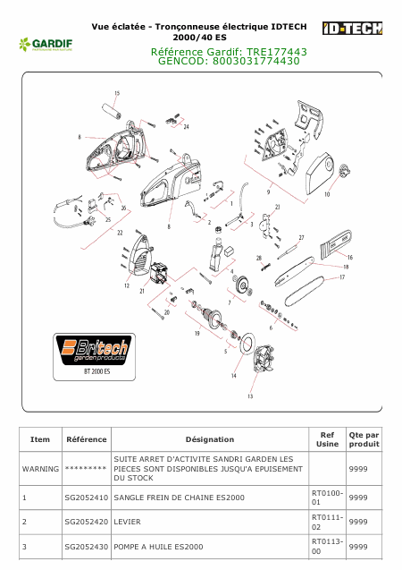 BRITECH BT 2000 ES Ersatzteile Französisch