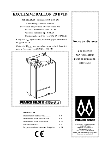 Download ATLANTIC FRANCO-BELGE Idra Exclusive Ballon 28 BVID Beretta Installationsanweisungen Französisch (25 Seiten) 59.90 EUR
