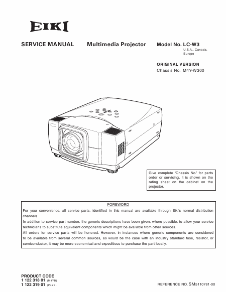 EIKI Chassis M4Y-W300 Manuale di servizio Inglese
