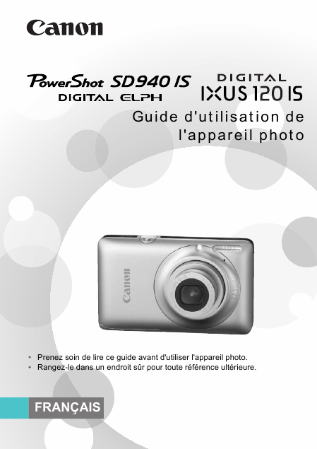 CANON PowerShot SD940 Users Guide French