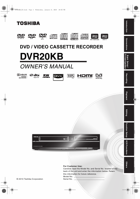 TOSHIBA VDR20KB Mode emploi Anglais