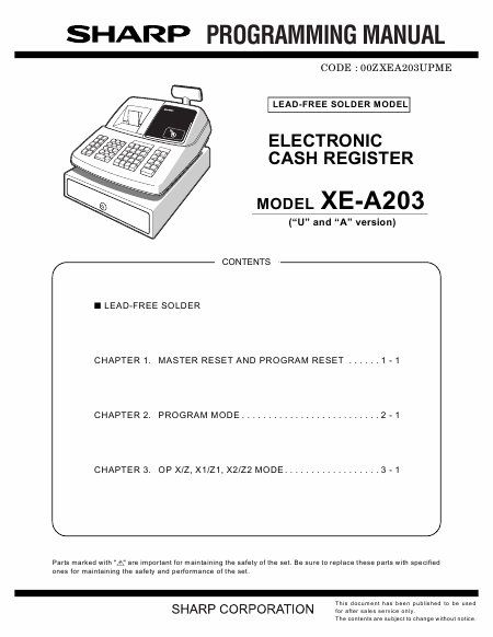 SHARP XE-A203 (Programming) Manuale di installazione Inglese
