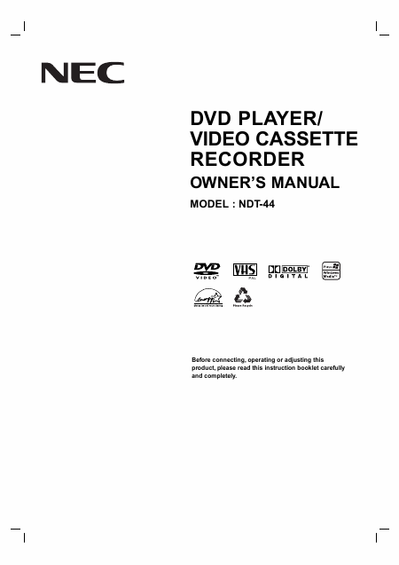 Telecharger NEC NDT-44 (NDT44) Mode emploi Anglais (38 Pages) 15.90 EUR