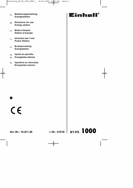 Download EINHELL BT-PS 1000 Anleitung Englisch (8 Seiten) 12.90 EUR