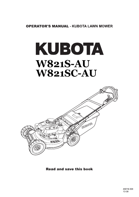 KUBOTA W821SC-AU Guía del usuario Inglés