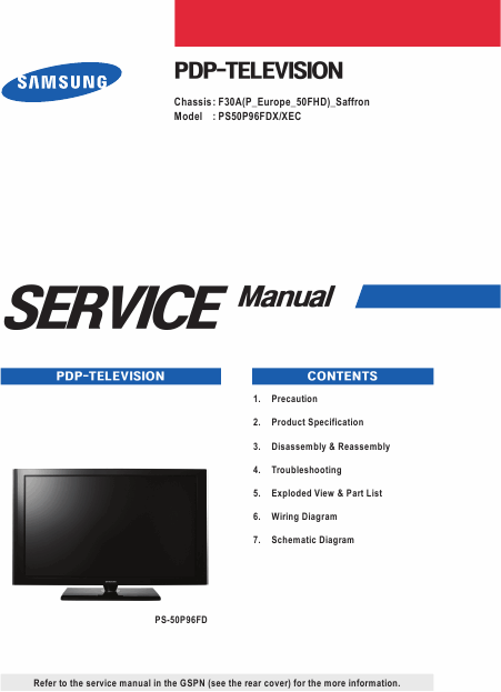 SAMSUNG PS50P96FD Manuale di servizio Inglese