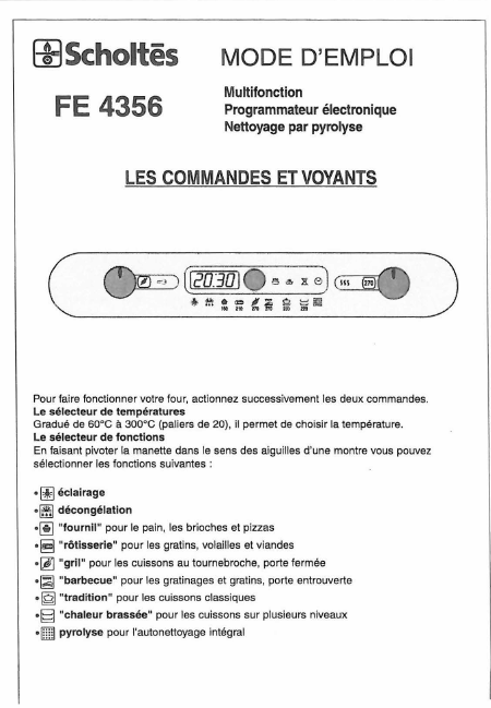 SCHOLTES FE4356 Mode emploi Français