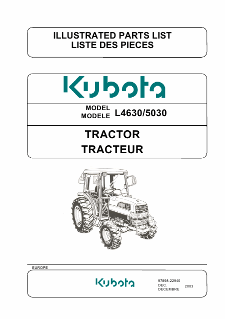 Baixar KUBOTA L 5030 (L5030) Lista de peças Alemão (516 Pages) 39.90 EUR