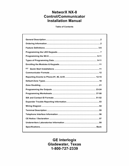 GE (GENERAL ELECTRIC) NX-8 NetworX Series Manuale di installazione Inglese