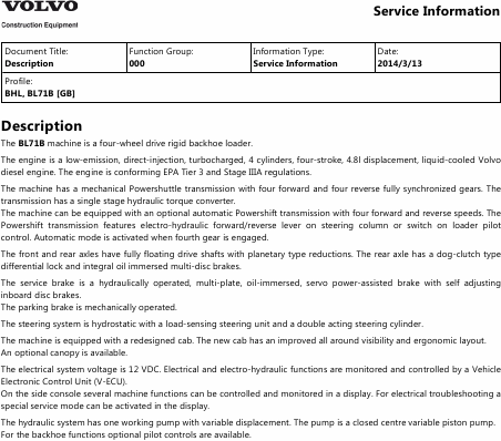 Download VOLVO BL71B Service Manual English (796 Pages) 39.90 EUR