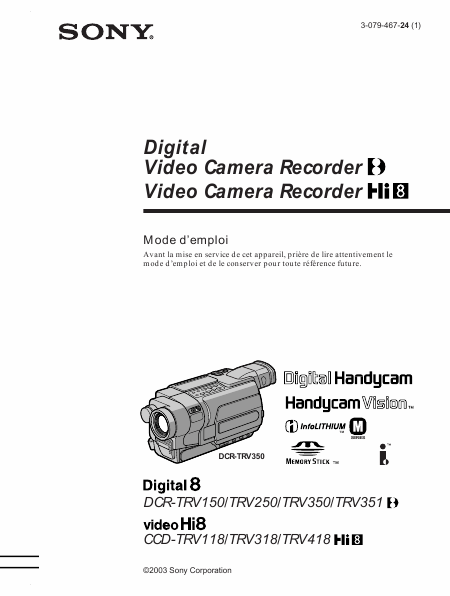 Descargar SONY CCD-TRV118 / TRV318 / TRV418 Guía del usuario Francés (268 Páginas) 12.90 EUR