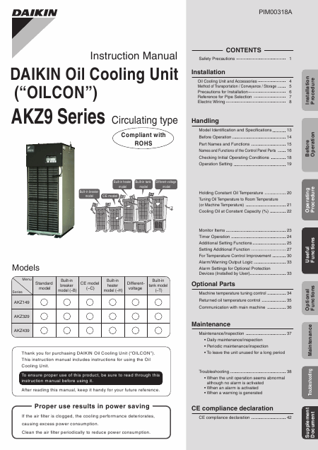 Telecharger DAIKIN AKZ9 Series Mode emploi Anglais (48 Pages) 15.90 EUR