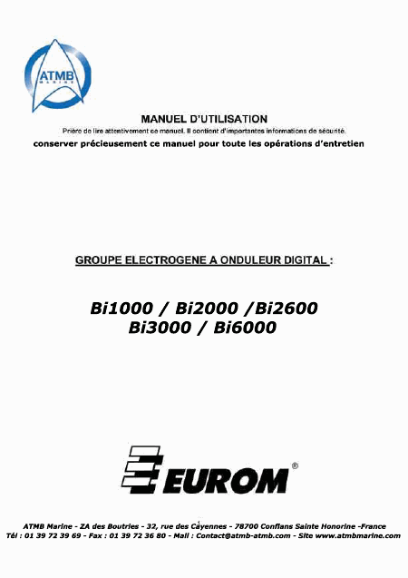 Telecharger EUROM Bi1000 / Bi2000 Mode emploi Français (26 Pages) 15.90 EUR