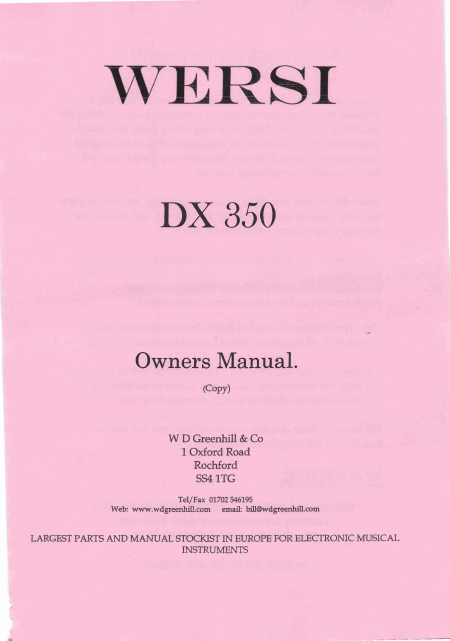 WERSI ALPHA DX350 Users Guide English