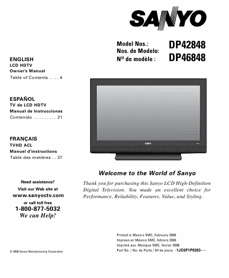 Scaricare SANYO DP46848 Istruzione Inglese (18 Pagine) 12.90 EUR