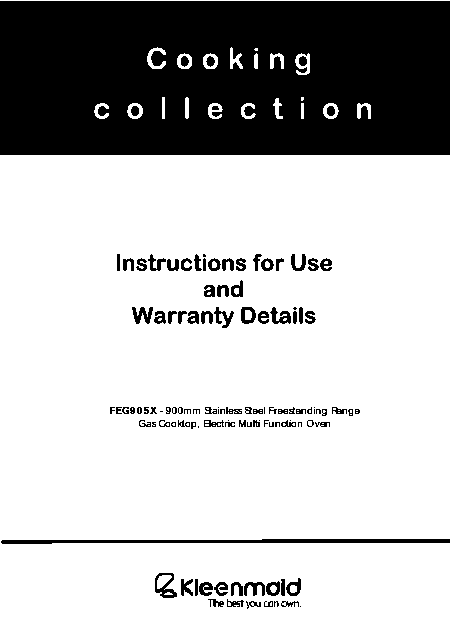 Telecharger KLEENMAID FEG905X Mode emploi Anglais (44 Pages) 39.90 EUR