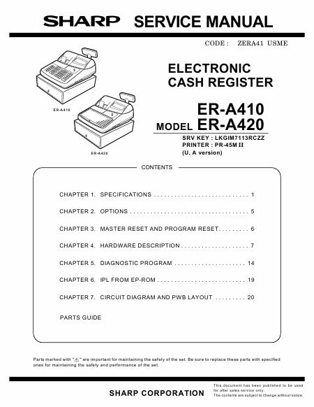 Scaricare SHARP ER-A410 Manuale di servizio Inglese (44 Pagine) 39.90 EUR