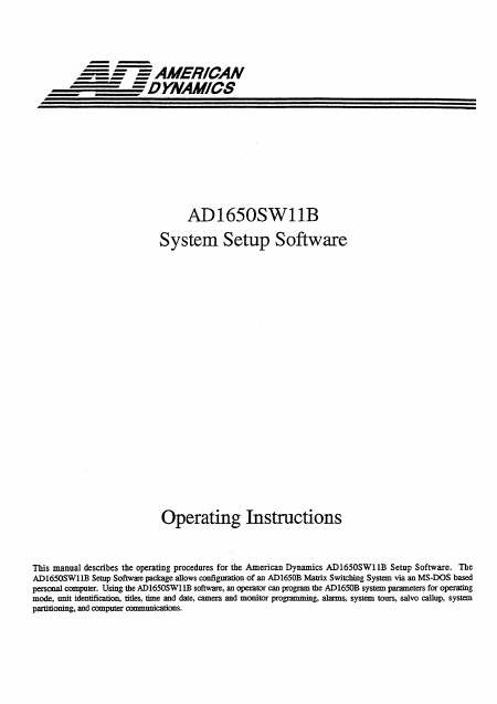 Download AMERICAN DYNAMICS AD1650SW11B Installationsanweisungen Englisch (61 Seiten) 15.90 EUR