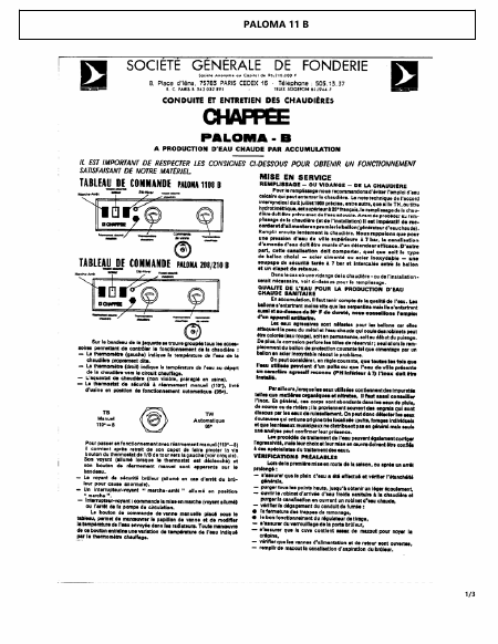 Scaricare CHAPPEE Paloma 11 B Istruzione Francese (3 Pagine) 39.90 EUR