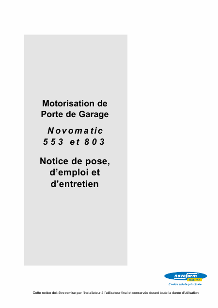 NOVOFERM Novomatic 553 Installationsanweisungen Französisch