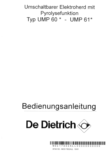 DE DIETRICH UMP 60* Users Guide German