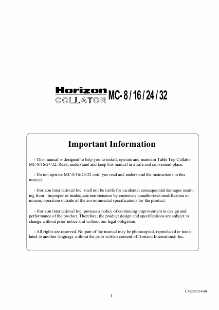 HORIZON MC-8 (MC8) Mode emploi Anglais
