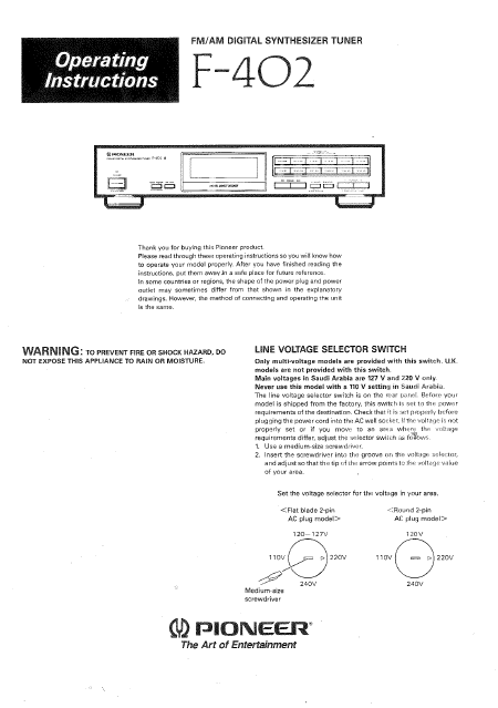 PIONEER F-402 Anleitung Englisch