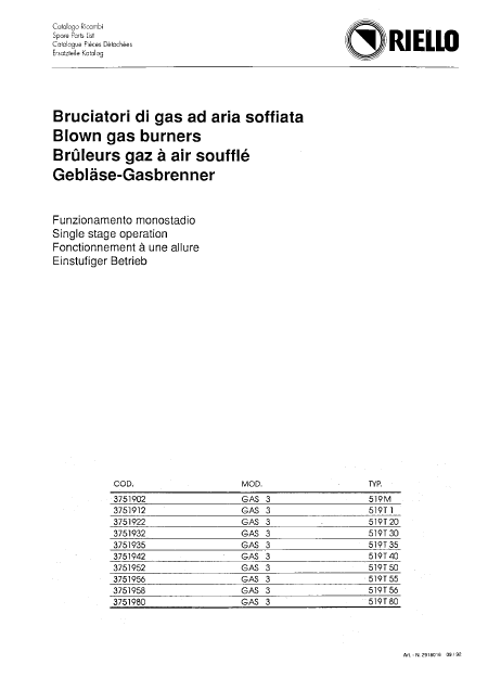 RIELLO GAS (3/4/5/6) Ersatzteile Französisch