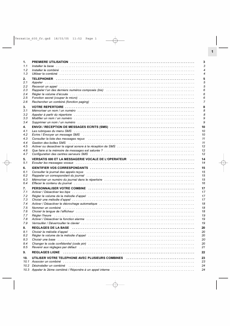 ALCATEL Versatis 600 Istruzione Francese