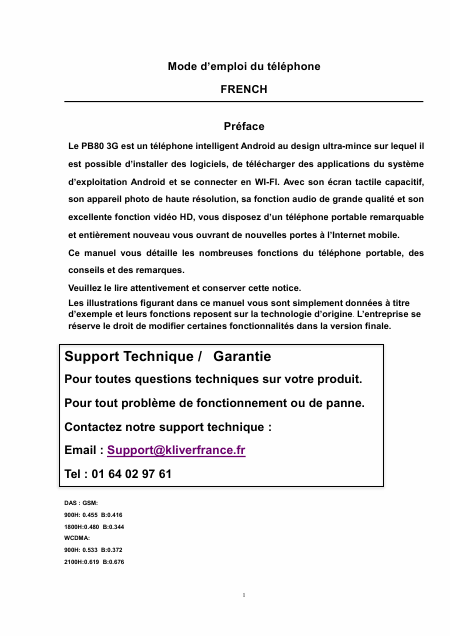 Download KLIVER Klipad PB80 Users Guide French (35 Pages) 39.90 EUR