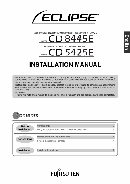 ECLIPSE CD 5425 E (CD5425E) Installation Manual English