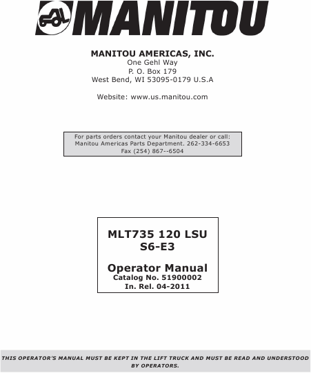 MANITOU MLT 735 Istruzione Inglese
