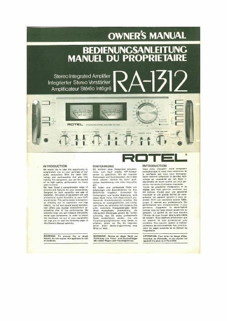 ROTEL RT-1024 Anleitung Englisch