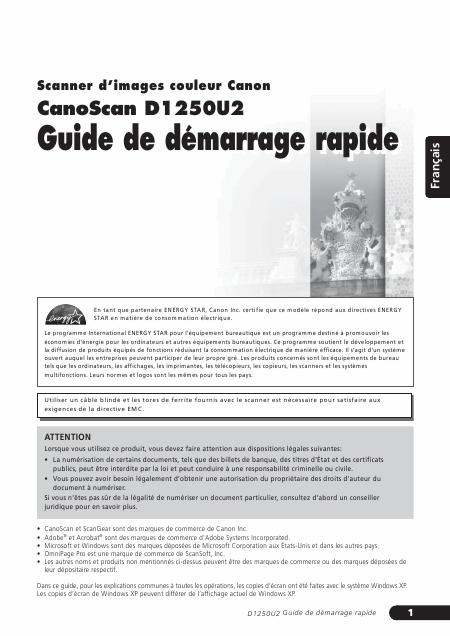 CANON CanoScan D1250U2 Guía de inicio rápido Francés