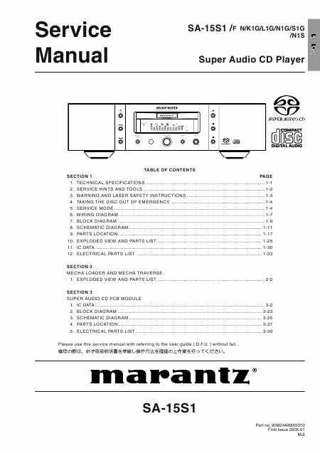 Download MARANTZ SA-15S1 Serviceanleitung Englisch (73 Seiten) 15.90 EUR