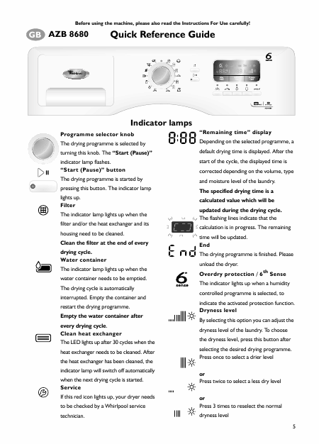 WHIRLPOOL AZB 8680 (AZB8680) Istruzione Inglese