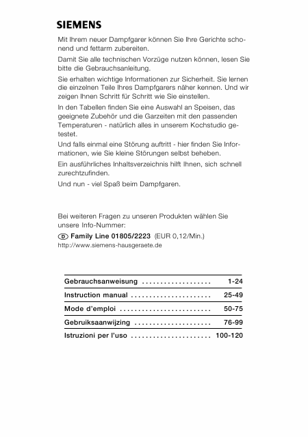SIEMENS HB24D561 Istruzione Tedesco