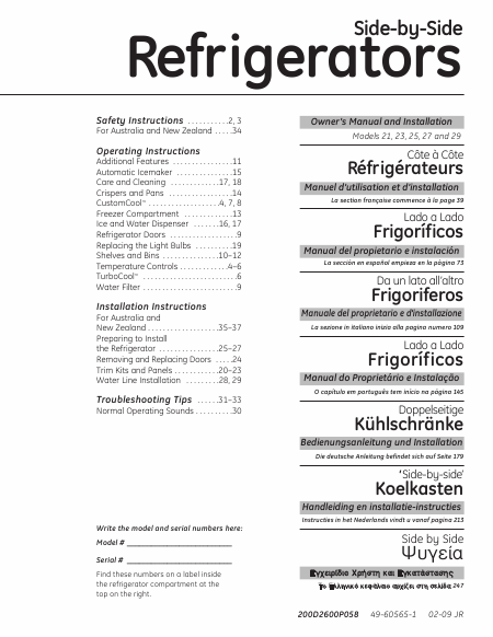 Telecharger GE (GENERAL ELECTRIC) GCE21XGYFLS Mode emploi Français (40 Pages) 12.90 EUR