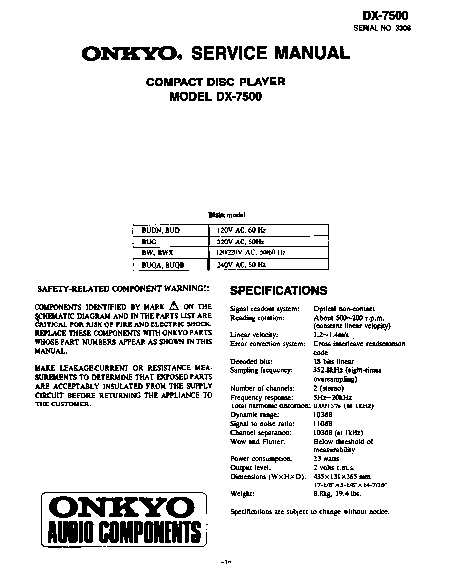 Download ONKYO DX-7500 Serviceanleitung Englisch (23 Seiten) 15.90 EUR