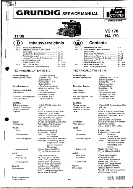 GRUNDIG VS 170 (VS170) Schemas Anglais