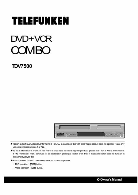 TELEFUNKEN TDV-7500 Mode emploi Anglais