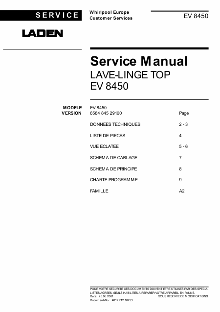 Download LADEN EV 8450 (EV8540) Service Manual French (9 Pages) 15.90 EUR