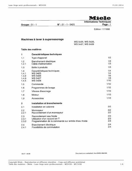 Download MIELE WS 5427 Service Manual French (144 Pages) 39.90 EUR