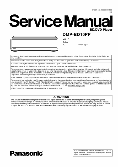 PANASONIC DMP-BD10PP Manuel de service Anglais