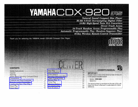 YAMAHA CDX-920 (CDX920) Guía del usuario Inglés